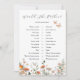 Bridal shower game card featuring a watercolor border of woodland illustrations, wildflowers and mushrooms. A fun way to interact with shower guests.