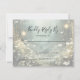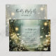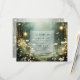 Ethereal forest path of flowers and trees are featured in this magical enchanted sage green wedding rsvp, with glowing lights.