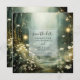 Ethereal forest path of flowers and trees are featured in this magical enchanted sage green wedding save the date, with glowing lights.