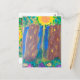 Follow the path illuminated by the blazing sun through the enchanted forest until you find the magic clearing. Painted in vibrant acrylic colors the green of the leaves, the purple and yellow of the flowers and the fiery orange of the sun contrast with the mystical blues that will tempt you to go deeper among the trees.