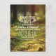 Beautiful outdoor wedding save the date postcards with enchanted woodland trees. Casual typography handwritten swirls.