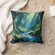 Beautiful enchanted forest throw pillow featuring a dreamy woodland scene with glowing water, soft sun rays, mossy trees, and a magical fantasy atmosphere. Perfect for bedrooms, living rooms, cozy reading corners, and nature-inspired decor. A calming and elegant accent pillow for fantasy lovers and peaceful home spaces.