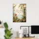 Ethereal forest path of flowers and trees are featured in this magical enchanted wedding poster to hang at your venue, with trees, magical mushroom and hanging lantern lights.