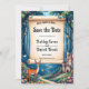 Enchant your guests with this woodland fairytale Wedding Save-the-Date, featuring a whimsical castle, forest animals, and vibrant florals. With a charming banner and magical details, it's perfect for a romantic, storybook celebration.
