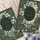 Step into an enchanted garden with this captivating Art Nouveau wedding invitation. The luxurious design is set against a rich forest green backdrop, with white flowers and sage green foliage creating an organic frame around the central, elegantly scripted announcement. These natural elements represent growth and harmony, resonating with the spirit of a wedding. The golden foil accents that outline the botanicals add a touch of opulence, ensuring this invitation catches both the light and the attention of your guests. The combination of the deep green tones with the metallic gold gives this card a feeling of timeless elegance, while the white floral motifs suggest purity and new beginnings. Ideal for couples seeking to combine classic sophistication with the magic of nature, this invitation is a promise of a day filled with beauty and love.