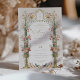 Begin your wedding journey with the timeless charm of our Enchanted Garden Floral Save the Date Wedding Invitation. Featuring a luxurious patterned background in a creamy latte with subtle gold accents, this invitation exudes a sense of vintage elegance. The front side presents a romantic botanical illustration, with a classic Grecian urn overflowing with a lush arrangement of watercolor flowers in soft pinks, corals, and verdant greens. Delicate birds perched amongst the flora complete the idyllic garden scene, inviting your guests to a wedding that promises to be as enchanting as the invitation itself.
