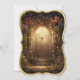 A magical wedding invitation set designed with an enchanting fantasy theme. The back design features an ornate arched golden door surrounded by lush flowers and glowing foliage, creating a dreamlike, fairytale ambiance. The front design complements this elegance with a luxurious Mediterranean tile-inspired gold frame, encasing a soft aged beige center — the perfect space for your wedding menu or custom text. Ideal for whimsical weddings, garden ceremonies, or fantasy-themed celebrations.