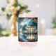 A luminous twilight gazebo glows beneath cascading string lights, nestled among blooming florals beside a glassy lake. Dreamy teal skies blend with soft pastel blossoms, creating a whimsical cottagecore fantasy filled with romance, serenity, and ethereal charm. Sparkling reflections shimmer across the water, while lush botanicals frame this enchanting fairytale escape in a painterly, storybook style. AI generated artwork.