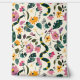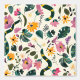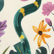 This artwork features a whimsical and enchanting garden scene, with a variety of vibrant flowers, leaves, and playful elements set against a soft cream background. The composition is filled with lush greenery, blooming flowers in pinks, yellows, and purples, and the occasional appearance of a snake weaving through the foliage. The design combines elements of nature with a touch of fantasy, creating a lively and imaginative atmosphere. The use of rich, saturated colors and dynamic shapes adds to the sense of movement and vitality in the scene.