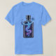 The "Enchanted Genie Bottle" t-shirt design showcases a mesmerizing illustration of a genie emerging from an intricately decorated bottle. The genie, composed of sparkling, ethereal blue and pink lights, spirals gracefully upwards, creating a magical and mystical aura. The bottle itself features ornate details with swirling patterns and glowing accents, adding to the enchantment of the design. The genie appears to be casting a spell or performing a magical act, with glowing orbs of energy floating around its outstretched hands. Set against a dark background, this design captivates the viewer's imagination, perfect for fans of fantasy, magic, and intricate artwork.