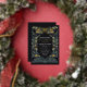 Elegant and gothic design with ravens and foliage. This design features a black background, with dark blue ravens and muted green leaves with gold accents.