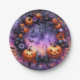 Celebrate Halloween in style with these enchanting paper plates! Featuring a vibrant design of orange pumpkins with various expressions, surrounded by black and purple flowers, leaves, and berries, these plates are perfect for any spooky gathering. The dark night sky with stars, swirling clouds, and a crescent moon adds a magical touch, while the bats silhouetted against the moonlight enhance the eerie atmosphere. Made from high-quality materials, these plates are both durable and disposable, making them ideal for serving snacks, desserts, or main courses at your Halloween party. Add a festive flair to your table setting and delight your guests with this whimsical design.