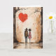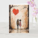 In this whimsical illustration, a man and a woman walk hand in hand through a sun-dappled forest. The towering trees create a natural canopy, filtering sunlight onto the couple as they stroll along a winding path. Above them, a large heart, adorned with delicate swirls and radiant hues, floats serenely in the air, casting a warm glow on the scene below. The air is filled with a sense of enchantment, as the couple embraces the magic of nature and love. This heartfelt image captures the essence of a romantic journey, making it a perfect visual expression for a Valentine's Day greeting card.