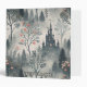 This fantastical scene binder features a dark, towering castle with glowing windows nestled in a misty forest of blue and grey tones. Surrounded by slender evergreens, bare-branched trees, and soft blossoms in pink and orange, the landscape shimmers with subtle specks of magical light. The twilight ambiance and ethereal details create a whimsical, mysterious atmosphere, perfect for lovers of fantasy, fairytales, and dreamlike forest settings.
