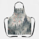 This fantastical scene apron features a dark, towering castle with glowing windows nestled in a misty forest of blue and grey tones. Surrounded by slender evergreens, bare-branched trees, and soft blossoms in pink and orange, the landscape shimmers with subtle specks of magical light. The twilight ambiance and ethereal details create a whimsical, mysterious atmosphere, perfect for lovers of fantasy, fairytales, and dreamlike forest settings.