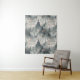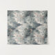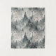 This fantastical scene tapestry features a dark, towering castle with glowing windows nestled in a misty forest of blue and grey tones. Surrounded by slender evergreens, bare-branched trees, and soft blossoms in pink and orange, the landscape shimmers with subtle specks of magical light. The twilight ambiance and ethereal details create a whimsical, mysterious atmosphere, perfect for lovers of fantasy, fairytales, and dreamlike forest settings.