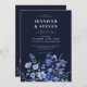 Enchanted Monochrome Navy Blue Wildflower Wedding Invitation