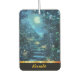 A serene pathway winds through a garden aglow with twinkling fireflies, illuminated gently by the soft light of a full moon. The lush foliage, adorned with blooming roses, creates a magical atmosphere.