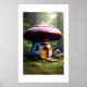 This image is interesting because it takes an element from nature—a mushroom—and anthropomorphizes it into a fantasy dwelling that could be straight out of a fairy tale or storybook. It plays on themes of magic and fantasy, evoking curiosity about who might live there and what kind of story this setting could tell.