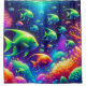 The “Enchanted Ocean Whimsy” shower curtain captures the playful spirit of the sea with its vibrant depiction of striped green fish and a medley of multicolored marine life. Amidst the brightly colored coral reefs and sea plants, these whimsical creatures create a lively underwater dance that’s sure to bring joy to your bathroom decor.