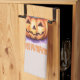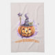 Step into a world of whimsy and magic with this adorable Halloween kitchen towel featuring the phrase “Enchanted Pumpkin Patch.” A smiling jack-o’-lantern dressed in a witch hat and holding a sparkling purple witch wand brings a touch of charm and enchantment to spooky season. Perfect for those who prefer cute over creepy, and magic over mayhem.