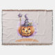Step into a world of whimsy and magic with this adorable Halloween blanket featuring the phrase “Enchanted Pumpkin Patch.” A smiling jack-o’-lantern dressed in a witch hat and holding a sparkling purple witch wand brings a touch of charm and enchantment to spooky season. Perfect for those who prefer cute over creepy, and magic over mayhem.