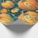"Enchanted Pumpkin Patch" is a magical wrapping paper design that transports you to a mystical realm of autumn celebration. This captivating pattern features a dense array of pumpkins in shades of vibrant orange and mystical blue, each adorned with whimsical, fairy-tale-like patterns that seem to tell their own little stories. The pumpkins are nestled amongst curling leaves and subtle accents of gold, enhancing their charm and wonder. The deep, rich colors set against a shadowy background make this design perfect for Halloween gifts or adding an extra touch of enchantment to any fall-themed present.