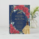 Enchanted Red Roses Floral Navy Blue Quinceañera Invitation