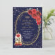 Enchanted Rose Quinceañera Navy Red Gold Birthday Invitation