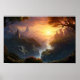 Enchanted Sunset Valley — Fantasy Landscape Art Po Poster