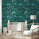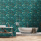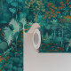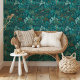 Step into a magical realm with the "Enchanted Teal Forest" wallpaper, an exquisite blend of rich colors and intricate botanical designs. This wallpaper showcases a vibrant, lush forest scene in varying shades of teal and green, brought to life with bursts of orange and yellow flowers. The dense foliage, featuring a variety of tropical plants and trees, creates a sense of depth and mystery, making it feel as though you are wandering through an enchanted forest. Perfect for creating a serene and captivating atmosphere in any room, this wallpaper is ideal for living spaces, bedrooms, or any area that could use a touch of natural beauty and whimsy.