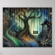 Enchanted Tree Swing and Glowing Lights at Night Poster