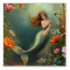 Enchanted underwater garden wall art featuring a graceful mermaid with flowing auburn hair. This painting blends the beauty of the teal deep sea with the vibrant colors of a blooming meadow. Surrounded by curious sea turtles, tropical fish, and oversized orange floral blooms, this artwork brings a sense of serenity and magic to any room.