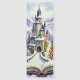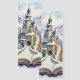 This enchanting bookmark showcases a majestic snow-covered castle rising from the pages of an open book, surrounded by winter forests and distant mountains.