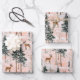 This whimsical winter wonderland wrapping paper features a delightful scene of a snowy forest. Delicate pink trees stand tall and majestic, their branches adorned with a dusting of snow. Graceful deer roam freely amidst the trees, adding a touch of elegance to the wintery landscape. The overall effect is a charming and festive design that captures the spirit of the season.