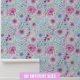 Transform your space with our enchanting peel and stick wallpaper! The graphic style is whimsical and detailed, featuring a delightful array of hand-drawn floral illustrations. Each bloom—from daisies to fantasy-inspired flowers—is rendered with care, creating a personalized touch. The color palette dances with shades of pink, purple, blue, and sunny yellow against a soft blue background. Darker lines define petals and leaves, while golden yellow dots add playful accents. Perfect for adding elegance and charm to any room, this design brings nature indoors with a modern twist.