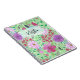 This delightful notebook combines functionality with elegance. The cover features a vibrant floral pattern, perfect for those who appreciate intricate botanical designs. The color scheme is composed of soft pastel green background adorned with polka dots, complemented by shades of pink, purple, and red in the floral motifs. The style is whimsical and feminine, with varying flower sizes creating depth and visual interest. The translucent light green overlay at the center allows for personalized text customization.