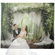 Step into an ethereal forest dreamscape with our 'Enchanting Forest Elegance' tapestry. Sunlight dances through the trees, casting a magical glow on white drapery adorned with delicate white flowers, creating a fairytale ambiance.