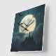 This luxury gothic wall clock captures the mystic beauty of a glowing full moon, bats soaring in the night sky, and a haunted house silhouette bathed in eerie mist.