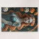 Piece together this mesmerizing puzzle featuring a beautiful sorceress with fiery red hair and a striking emerald green gown. Adorned with mystical tattoos and a wreath of orange roses, she emanates an aura of magic amidst an enchanted forest. Perfect for lovers of fantasy, magic, and captivating mythical art.