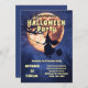 Unleash the spirit of Halloween with our captivating party invitation! This design features a classic witch, broomstick in hand, silhouetted against a colossal, glowing full moon. Barren tree branches reach eerily across the moonlit sky, creating a truly spellbinding atmosphere. It's the perfect design to set the scene for your unforgettable Halloween bash!