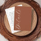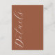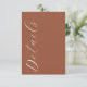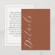 This modern wedding details card features a minimalist white front with elegant typography framed by a fine terracotta border, paired with a solid terracotta reverse accented by flowing script. Designed to neatly present venue information, accommodations, registry notes, or wedding website details, it coordinates seamlessly with contemporary and warm-toned wedding suites. Fully customizable for a cohesive, stylish celebration.