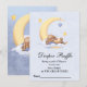 Baby shower Diaper Raffle with "Bring a pack of diapers in any size" card featuring an adorable bunny sleeping on the moon.