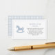 Cute blue rocking horse enclosure card for Baby boy blue and white Baby shower.