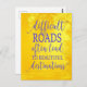 A beautiful support message on a fabulous postcard. The purple quote states "Difficult Roads often lead to beautiful destinations" on a beautiful yellow background. Works well with a cancer support get well sunshine box - or just as a thinking of you greeting.