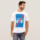 The shirt is good quality and fits just fine, but the colors of the printing are not as bright as in the sample photo. Not the best. The colors are a lot brighter in the sample photo; when I received the shirt they appeared faded. The red looks a little more pink and the blue is a lot lighter. N.B. I did not wash the shirt yet.