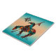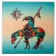 Brighten Your Home with this Unique "One of a Kind" End Of The Trail Ceramic Tile! It Features a Native American End Of The Trail Indian and Horse and Sun on a Turquoise and Orange Sunset Background!