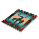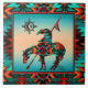 Brighten Your Home with this Unique "One of a Kind" End Of The Trail Ceramic Tile! It Features a Native American End Of The Trail Indian and Horse and Sun on a Turquoise and Orange Sunset Background...Surrounded by a Southwest Border in Turquoise, Orange & Black!