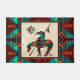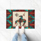 This is a Unique "One of a Kind" End Of The Trail Doormat! It Features a Native American End Of The Trail Indian and Horse on a Tan Sandstone Background...Surrounded by a Border in Turquoise, Orange & Black!
