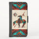 This is a Unique "One of a Kind" End Of The Trail Cell Phone Wallet Case! It Features a Southwest Native American End Of The Trail Indian and Horse Under the Sun on a Sandstone Background...Surrounded by Turquoise, Orange and Black Borders!
